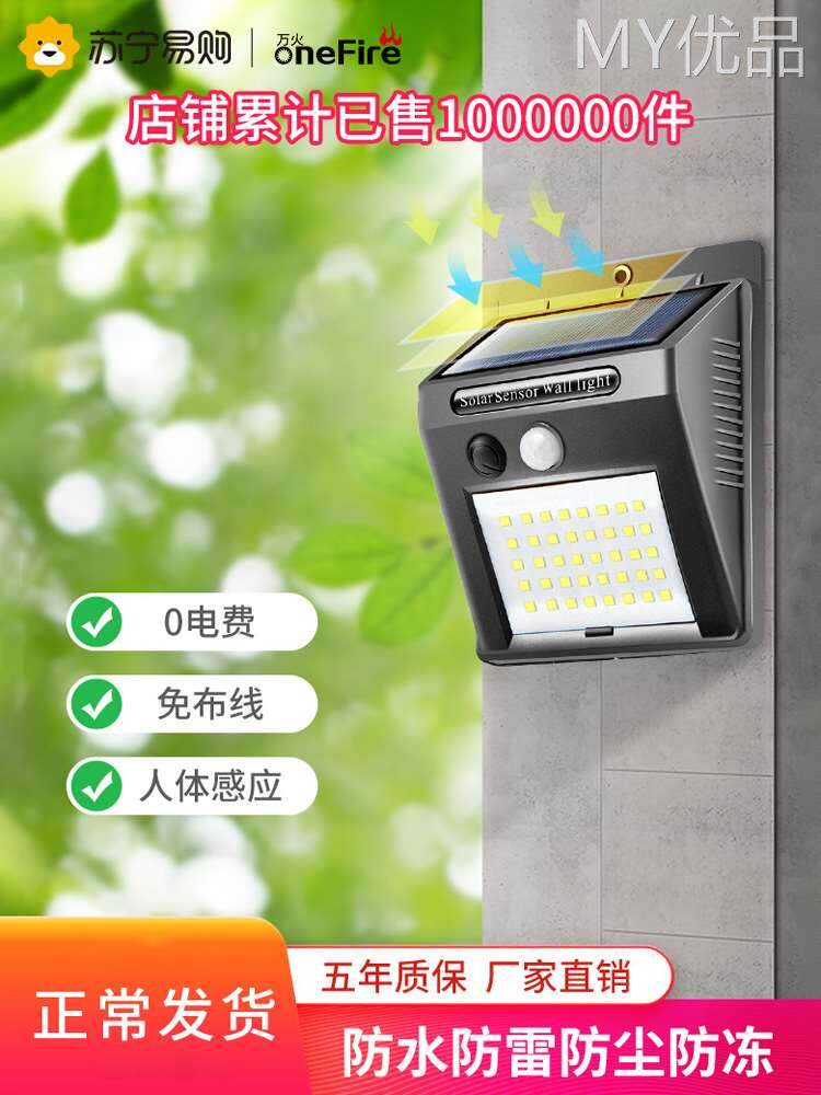 太阳能庭院户外灯人体声控感应壁灯家用照明超亮LED小夜灯万火453