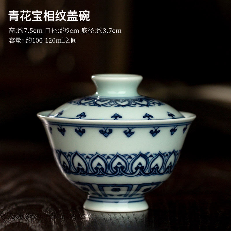 三勤堂手绘釉下青花宝相纹盖碗家用组合套装陶瓷壶承茶杯功夫茶具