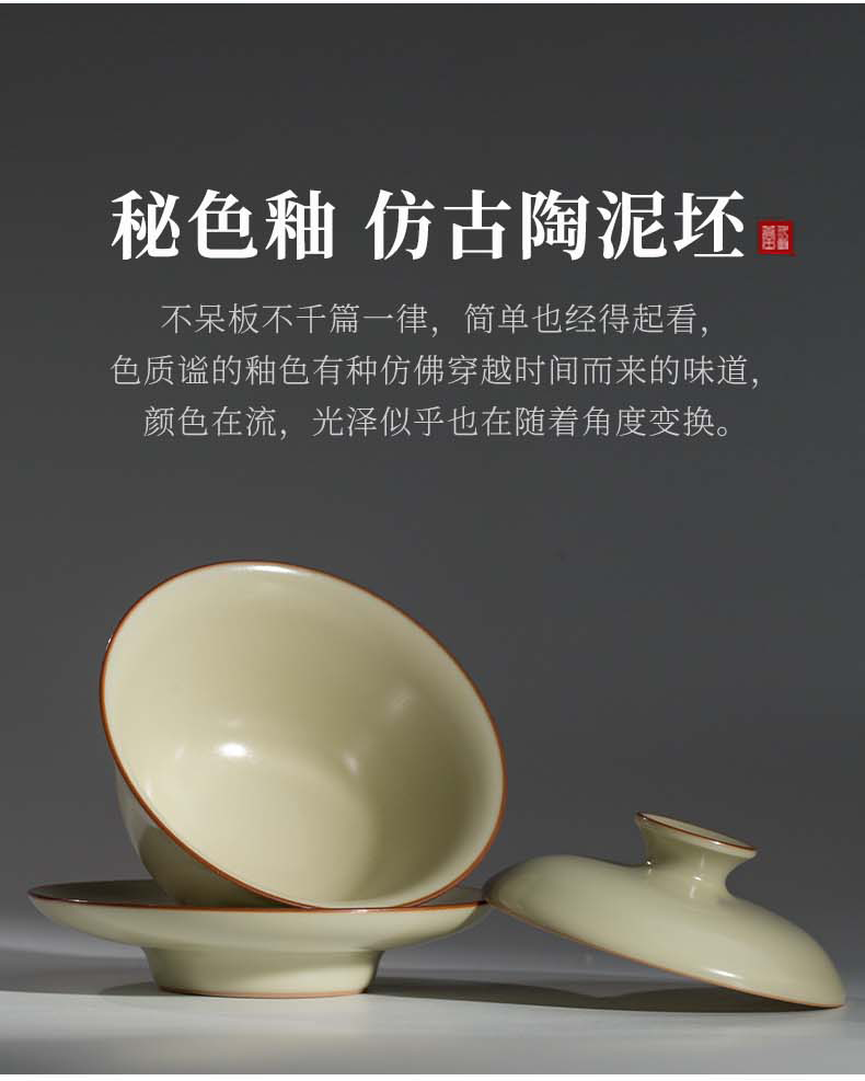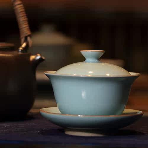 三勤堂秘瓷三才盖碗单杯功夫茶具秘色釉陶瓷中式茶碗不烫手泡茶器