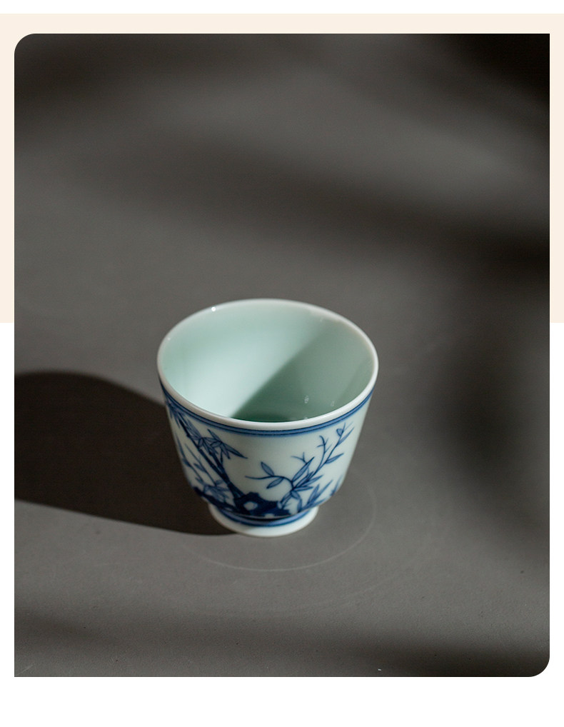 三勤堂主人杯景德镇陶瓷功夫茶具薄胎手工手绘青花竹子品茗杯茶杯