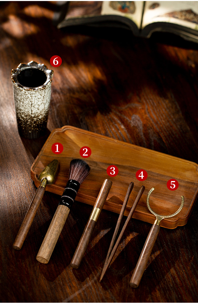 三勤堂茶道六君子套组黑檀木功夫茶具配件茶夹茶针茶匙茶筒点茶器