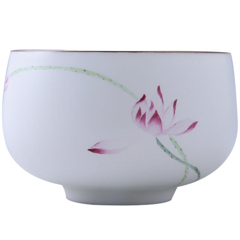 三勤堂茶具功夫茶杯陶瓷景德镇主人杯女手绘荷花聚香单鼓杯品茗杯