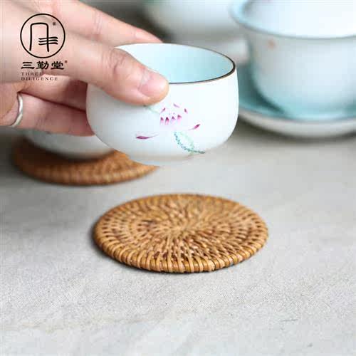 三勤堂功夫茶具零配件茶杯垫手工藤编竹制茶托养壶垫防烫垫S04022