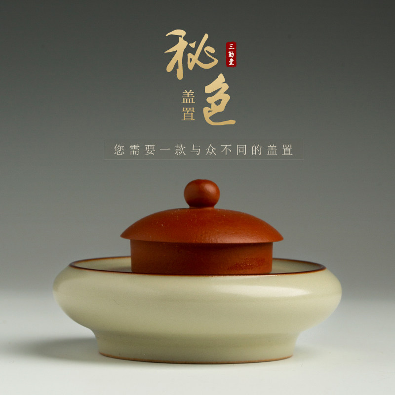 三勤堂陶瓷盖置秘色釉越窑家用功夫茶具配件茶壶盖托中式茶碗隔热