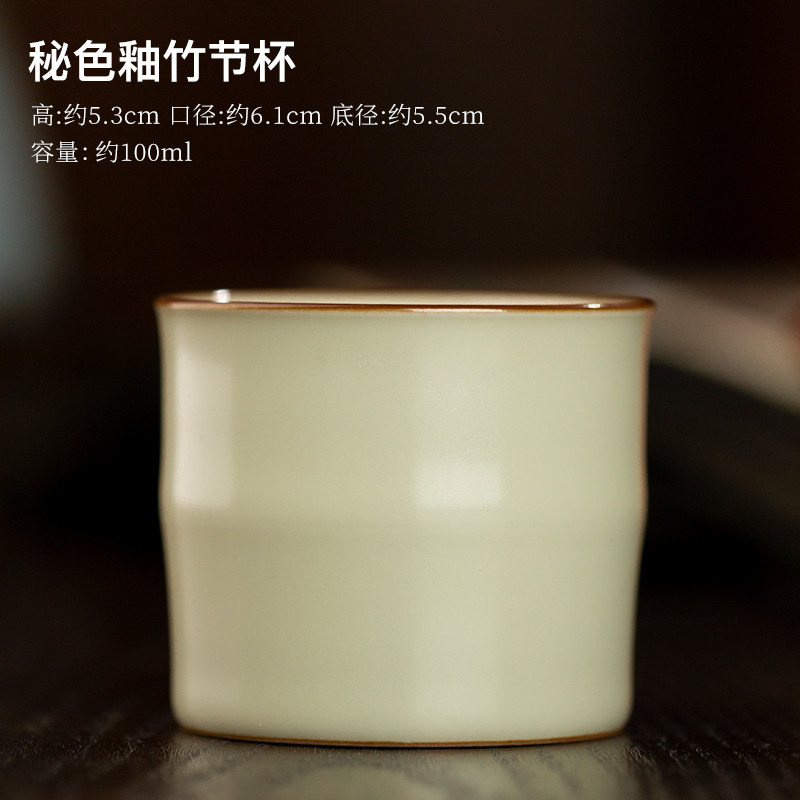 三勤堂秘色釉主人杯陶瓷茶杯个人专用品茗杯竹节杯功夫茶具单杯