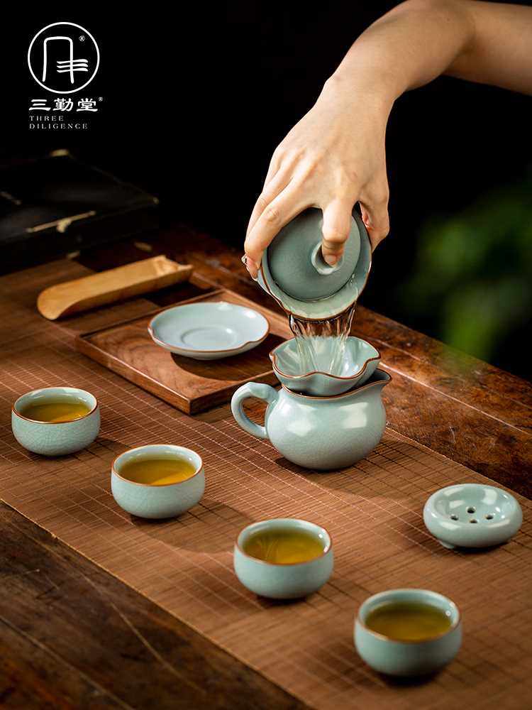 三勤堂汝窑功夫茶具套装家用客厅泡茶景德镇陶瓷茶杯盖碗办公会客