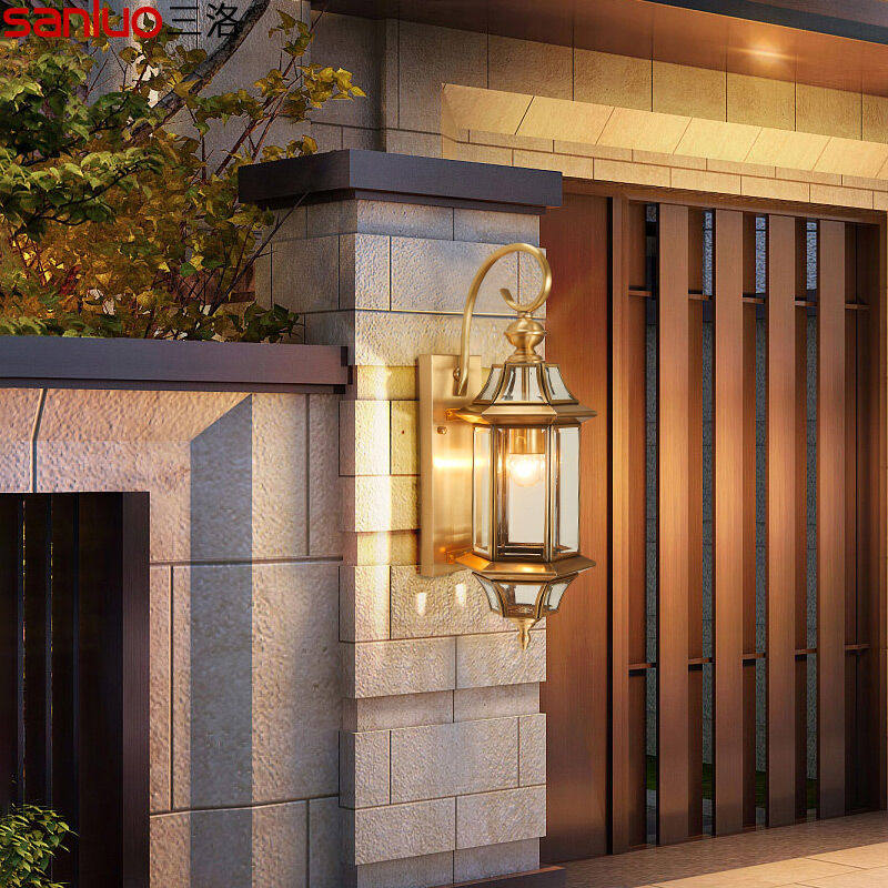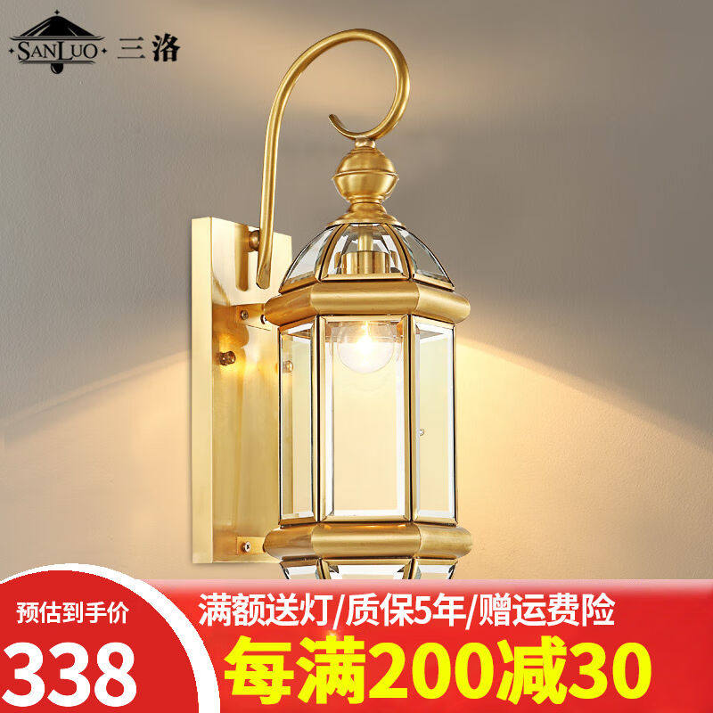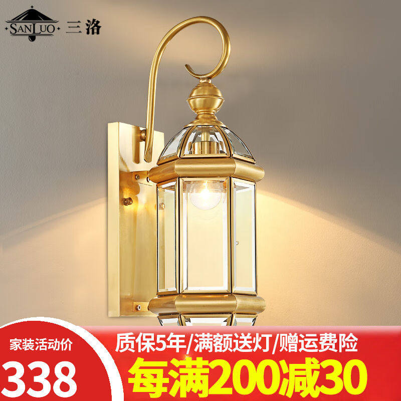 三洛(SANLUO)欧式全铜壁灯户外防水墙灯走廊过道阳台卧室床头酒
