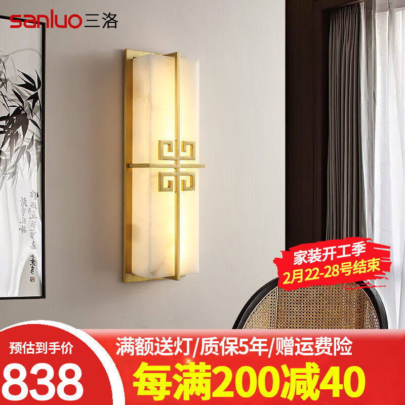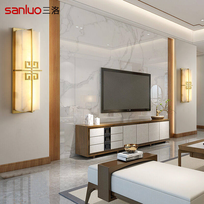 定制三洛新中式壁灯全铜云石客厅背景墙灯别墅酒店楼梯过道禅意长