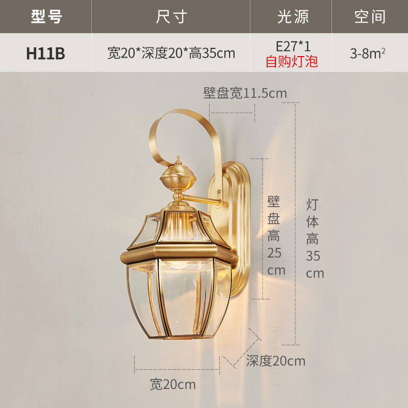 三洛欧式全铜壁灯卧室阳台庭院防水户外壁灯单头咖啡厅过道门厅灯