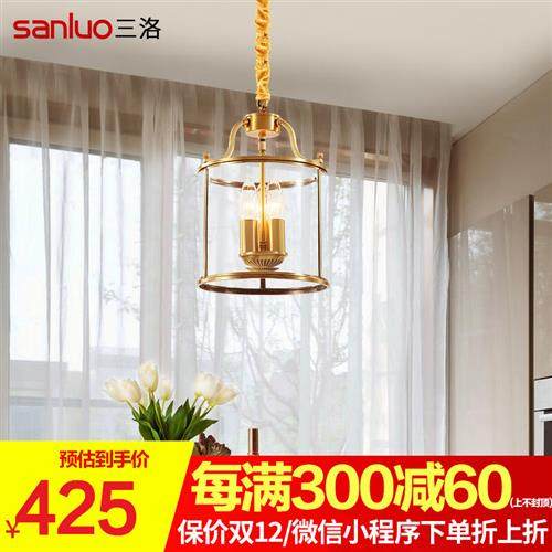 三洛 美式全铜小吊灯餐厅吧台灯过道阳台走廊入户玄关书房灯衣帽