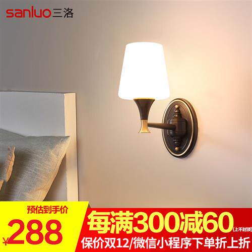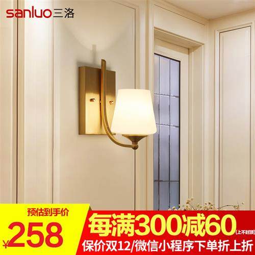 三洛(SANLUO)美式壁灯卧室床头灯全铜客厅背景墙灯北欧简约过道楼