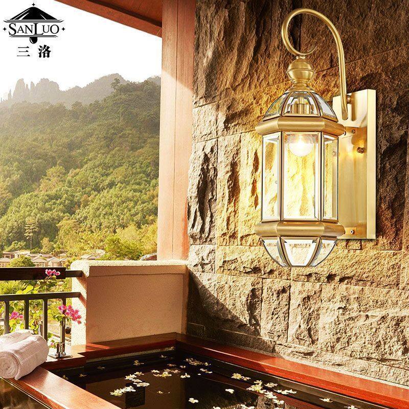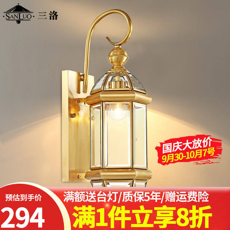 三洛(SANLUO)欧式全铜壁灯户外防水墙灯走廊过道阳台卧室床头酒店