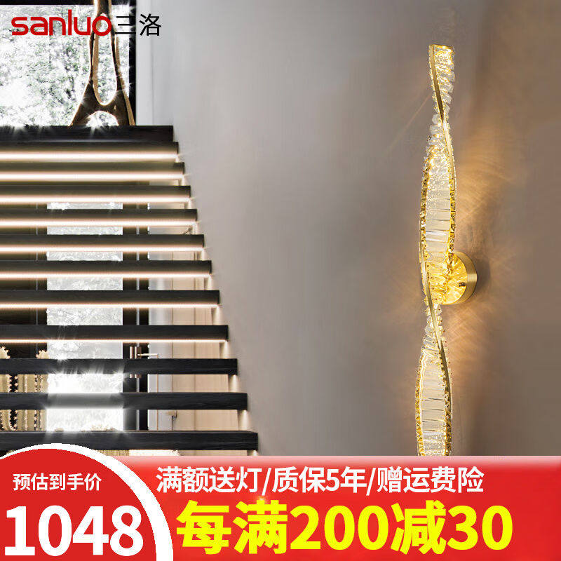 三洛后现代水晶壁灯客厅背景墙灯轻奢全铜卧室床头过道走廊led壁