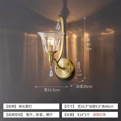三洛 美式全铜壁灯客厅背景墙灯后现代轻奢水晶卧室床头过道楼梯