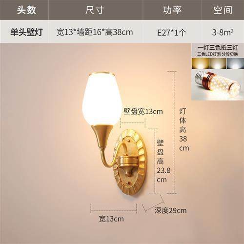 三洛 全铜美式壁灯卧室床头灯北欧简约客厅背景墙灯过道楼梯装饰
