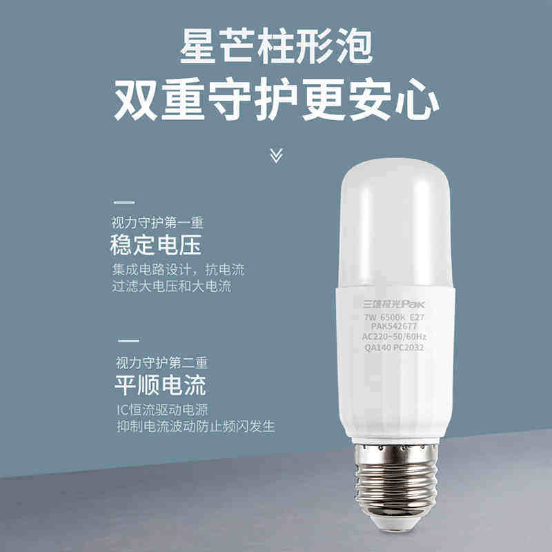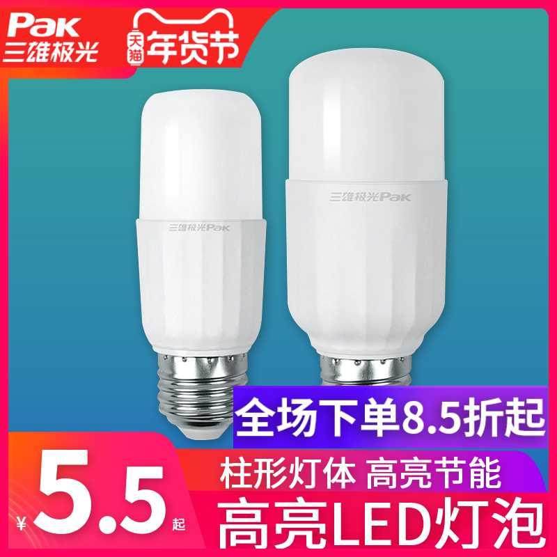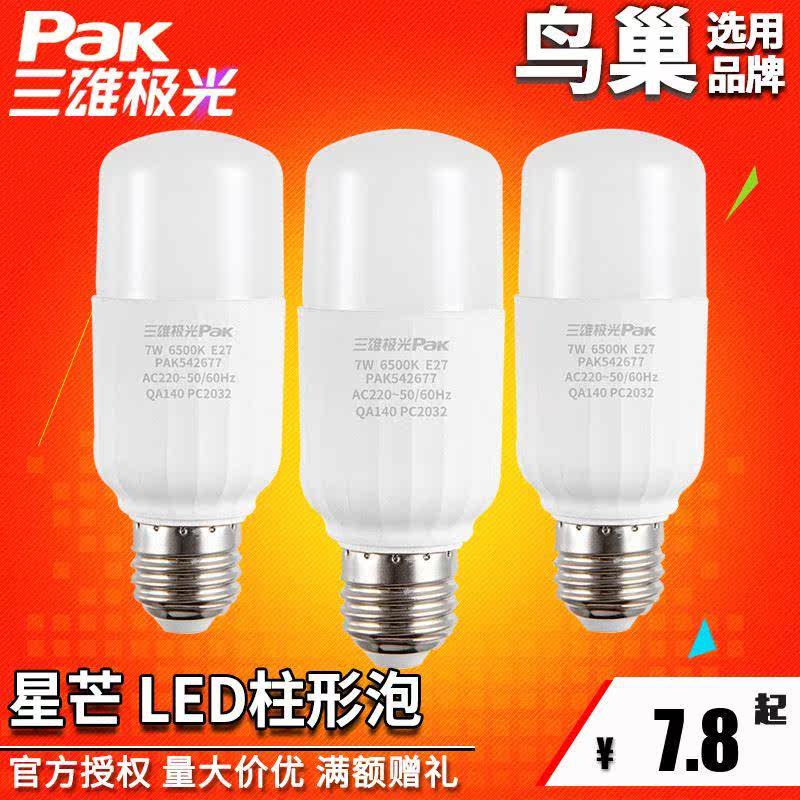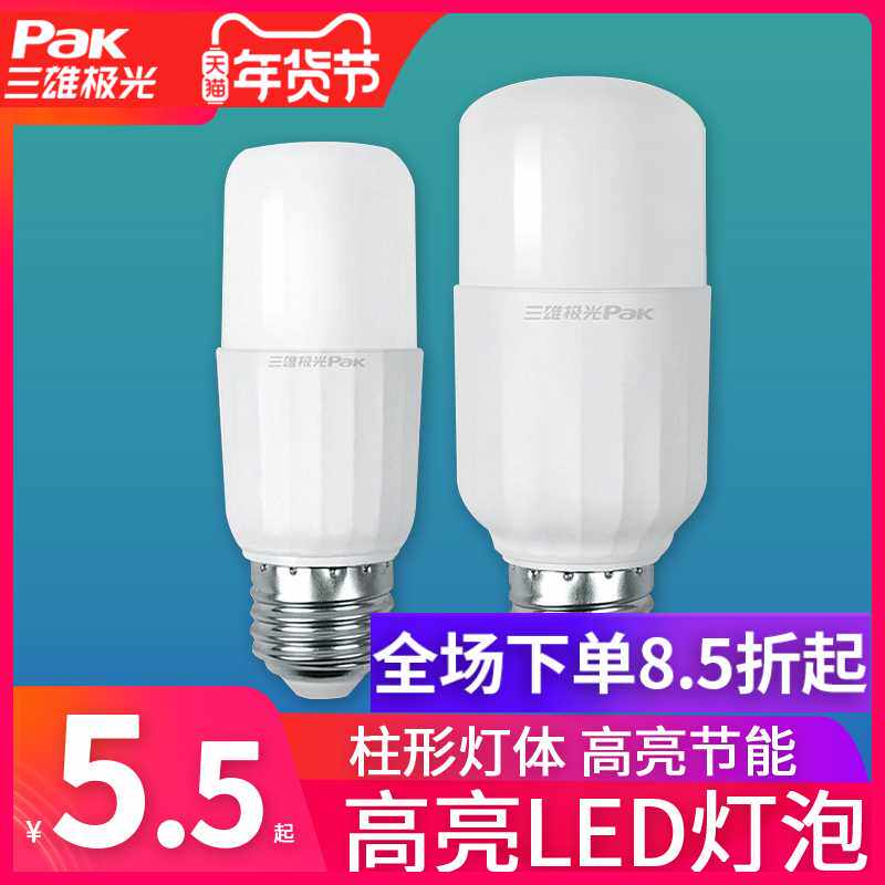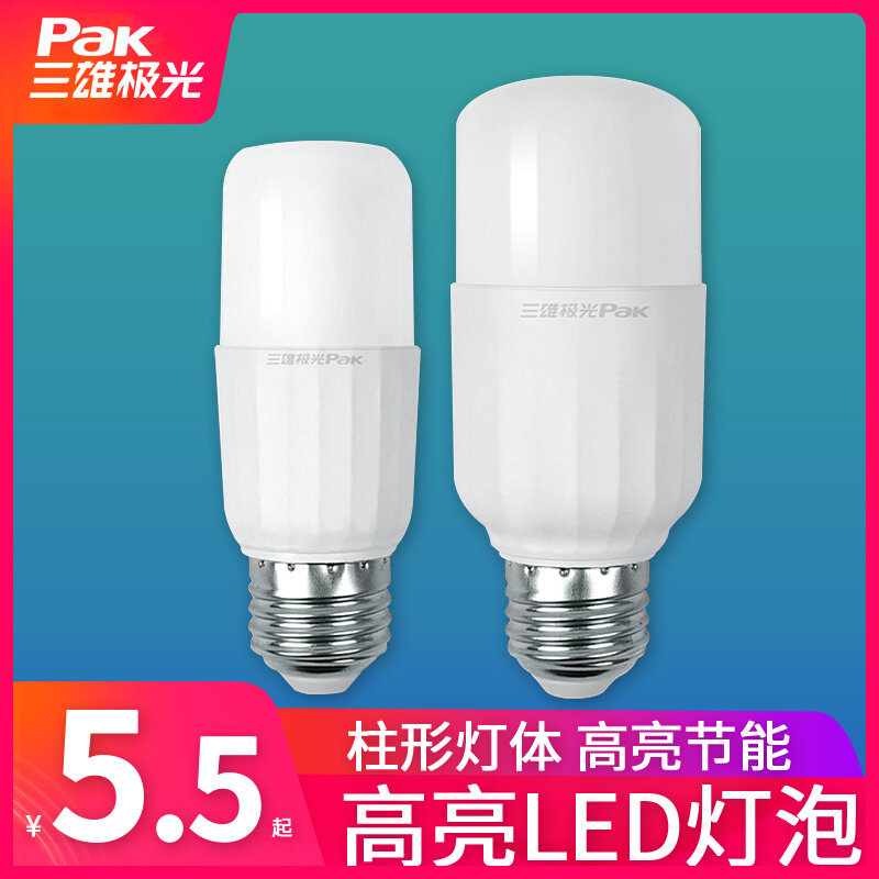 三雄极光led灯泡星芒柱形e27螺口家用超亮节能台灯吊灯卧室客厅灯
