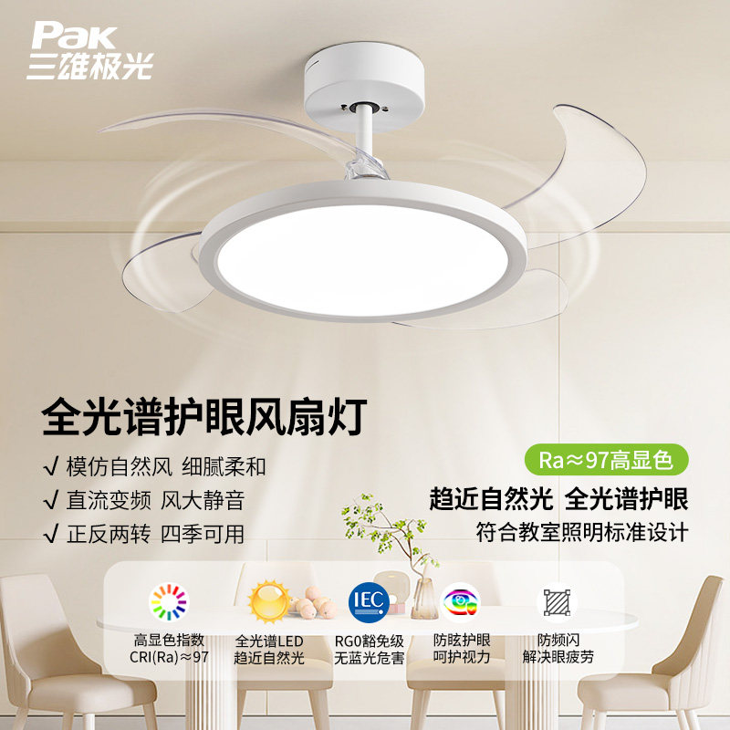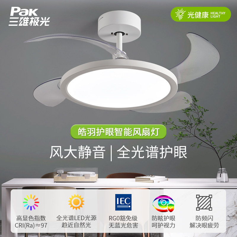 三雄极光全光谱智能吸顶风扇灯超静音吊灯客厅卧室一体餐厅吊扇灯