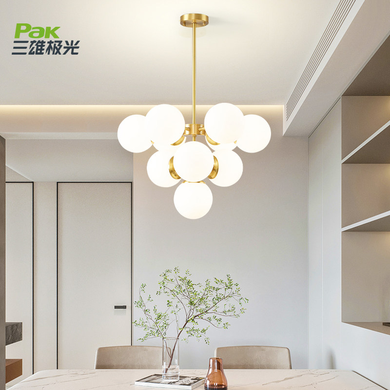 三雄极光吊灯现代简约客厅灯创意分子灯复式楼大餐厅灯卧室铜灯具