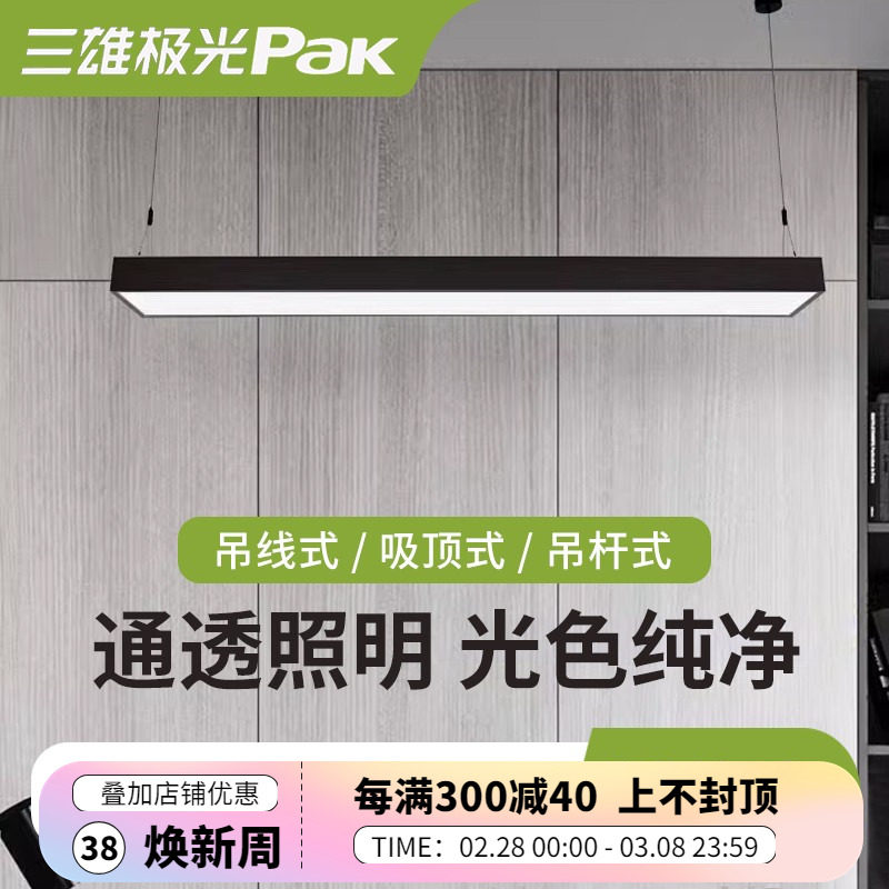 三雄极光精锐2代灯盘简约长条led办公室吊灯长方形方吸顶灯工作室