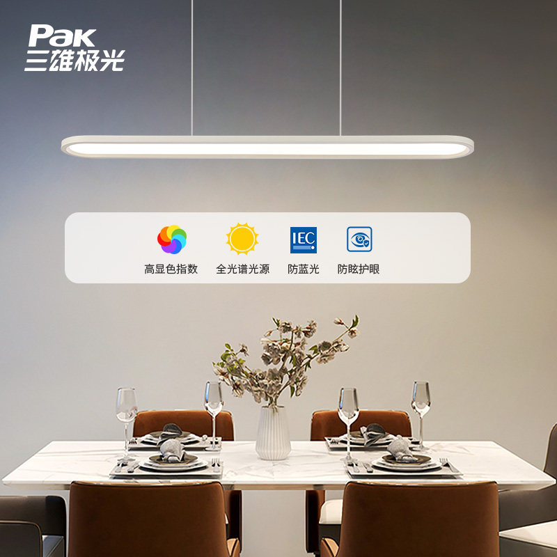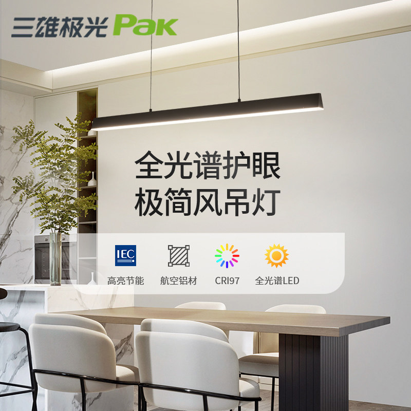 三雄极光全光谱护眼餐厅吊灯长条一字现代简约高显指智能餐桌灯具