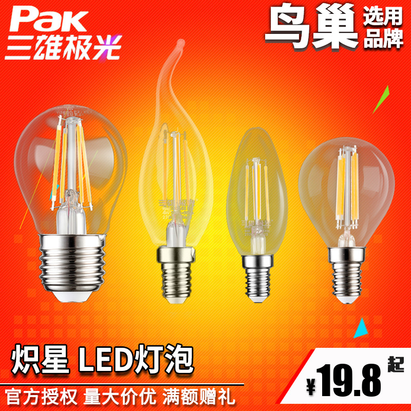 三雄极光LED灯泡炽星吊灯水晶复古灯泡E14小螺口暖光源节能灯尖泡