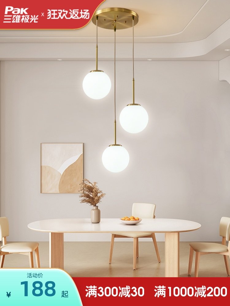 三雄极光餐厅灯led北欧餐厅吊灯吧台饭厅灯现代意式轻奢全铜灯具
