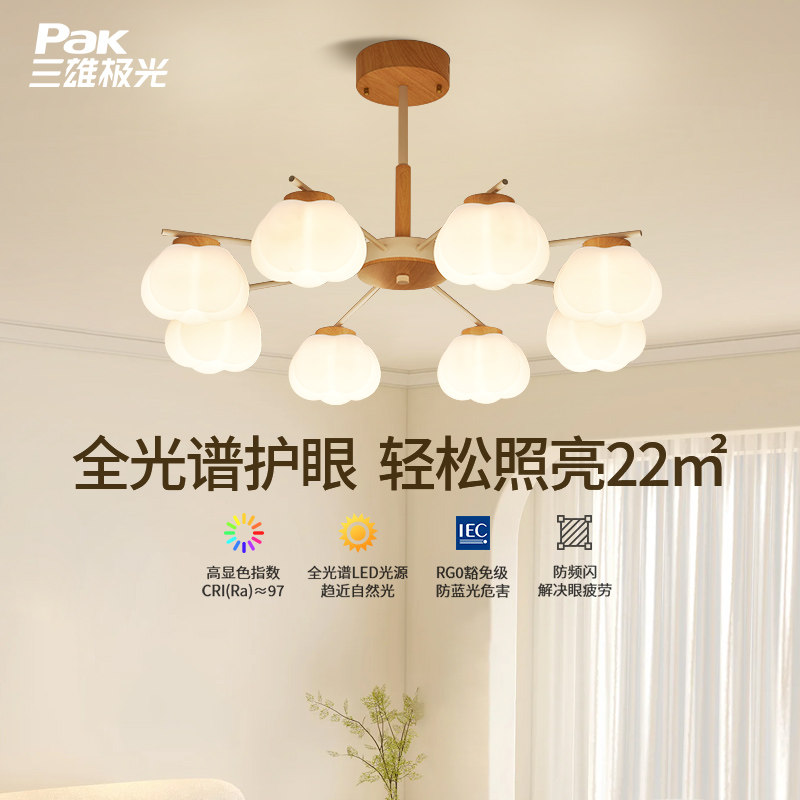 三雄极光全光谱防蓝光护眼吊灯原木奶油风客厅灯2023年新款餐厅灯