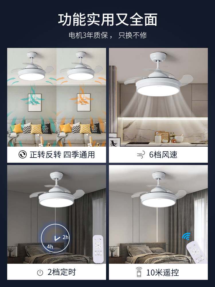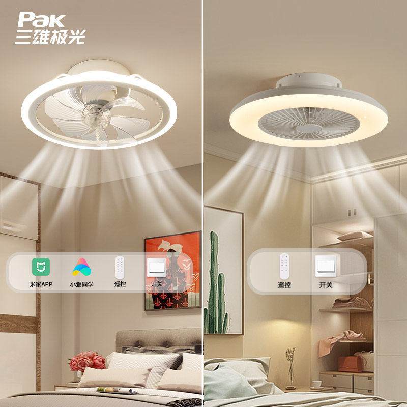 三雄极光隐形风扇灯餐厅客厅家用一体电风扇吊灯现代简约智能风扇