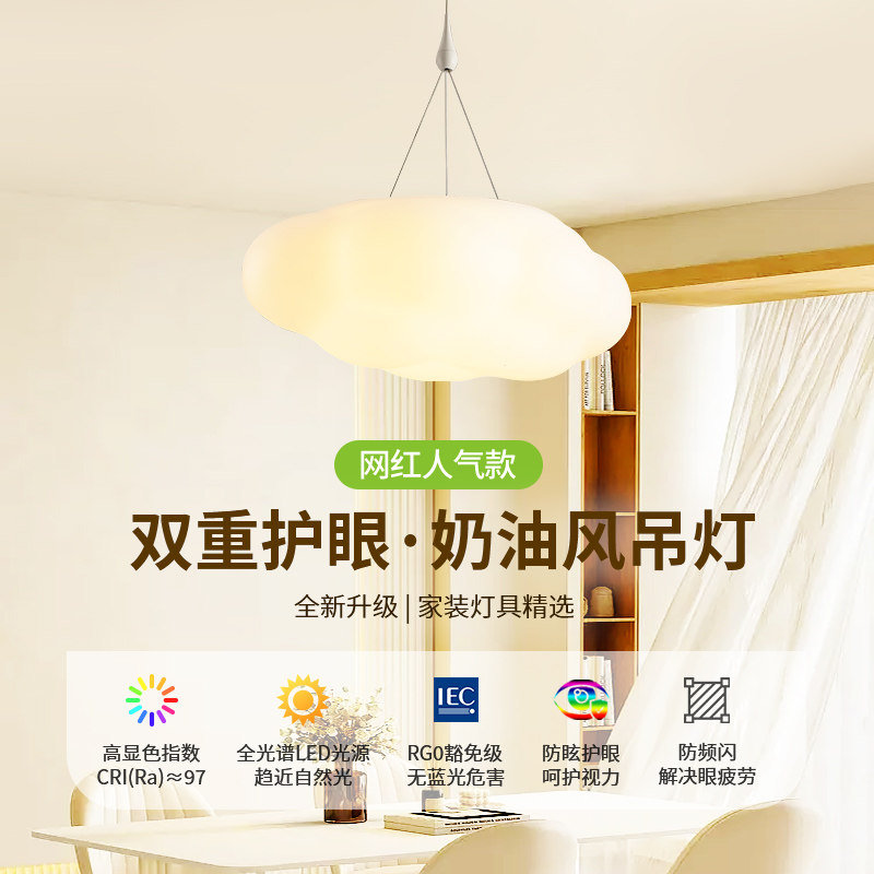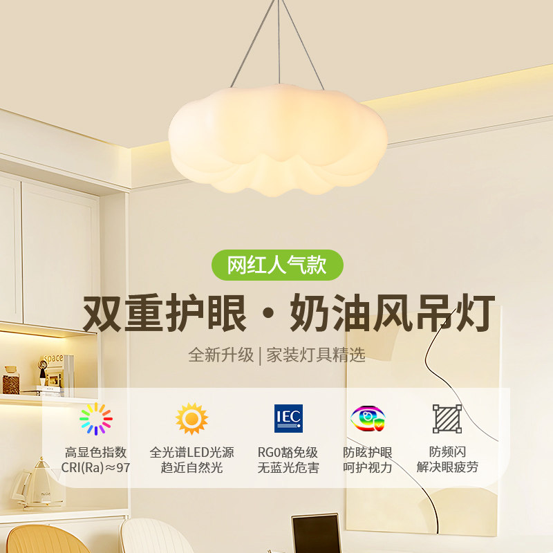 三雄极光全光谱护眼云朵led房间灯现代简约奶油风主卧室餐厅吊灯