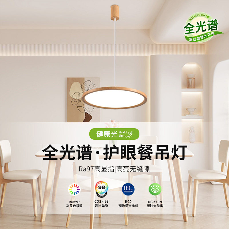 三雄极光全光谱护眼餐厅吊灯现代简约木纹主灯饭厅灯智能餐桌灯具