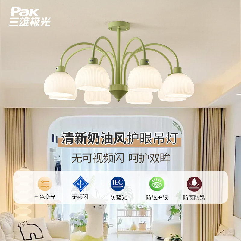 三雄极光客厅吊灯现代简约餐厅主卧室灯具创意个性奶油风护眼吊灯