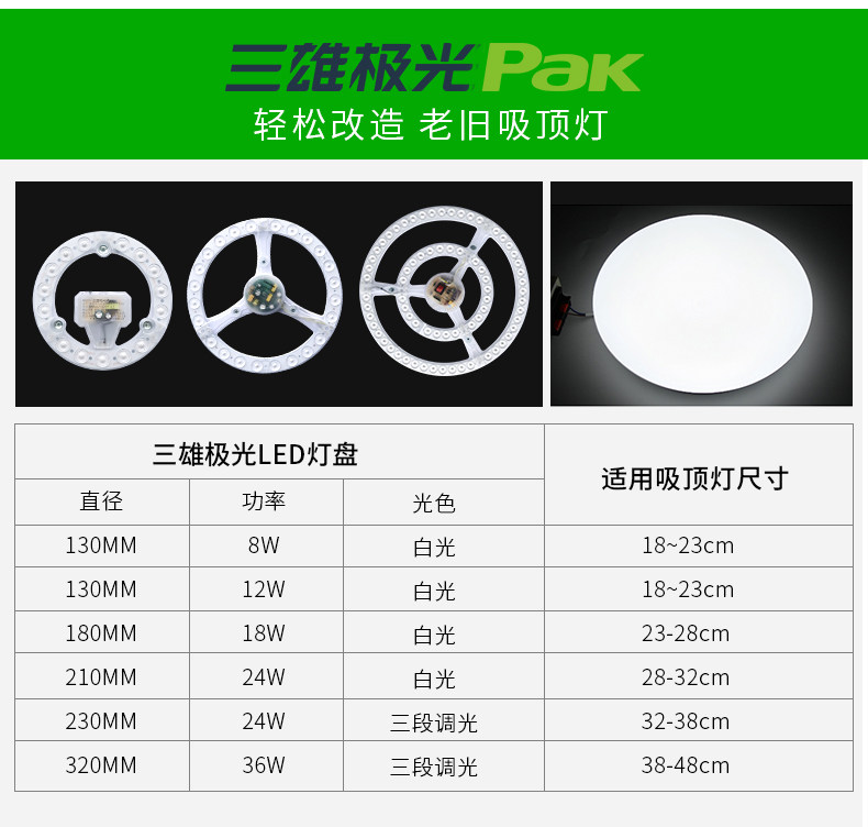 三雄极光吸顶灯吊灯led灯芯替换模组灯盘节能灯圆形超亮照明改造