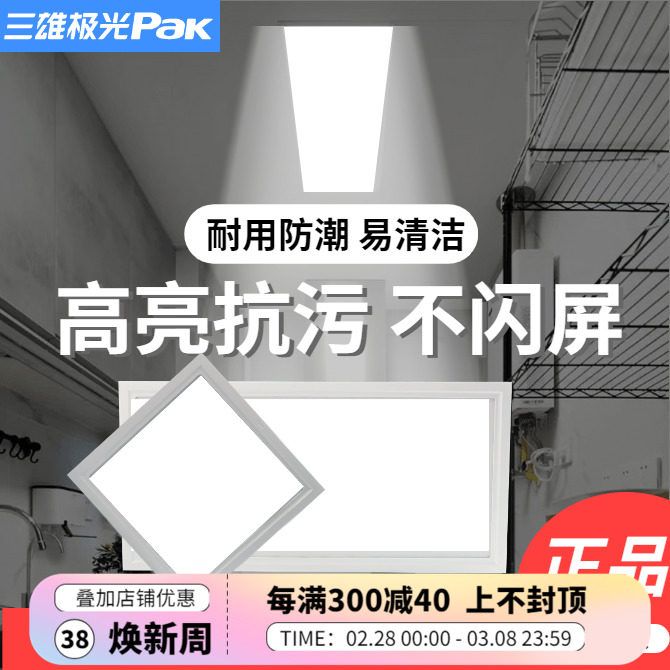 三雄极光厨房灯300×600集成吊顶嵌入式厨房吊灯方形厕所灯星韵