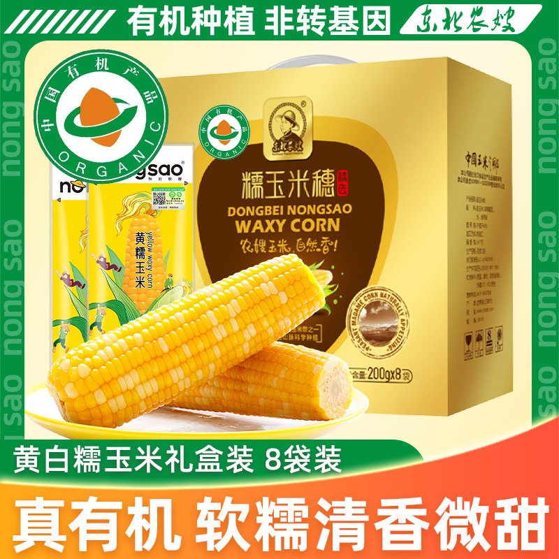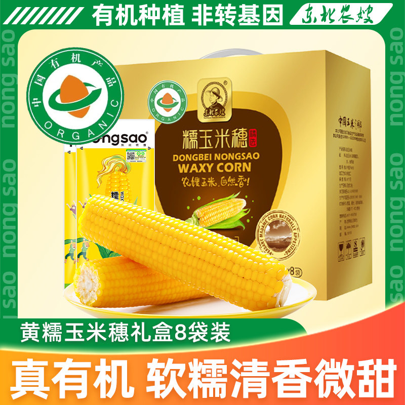 【真有机】 东北农嫂有机黄糯玉米礼盒200g*8穗香黏粘玉米棒