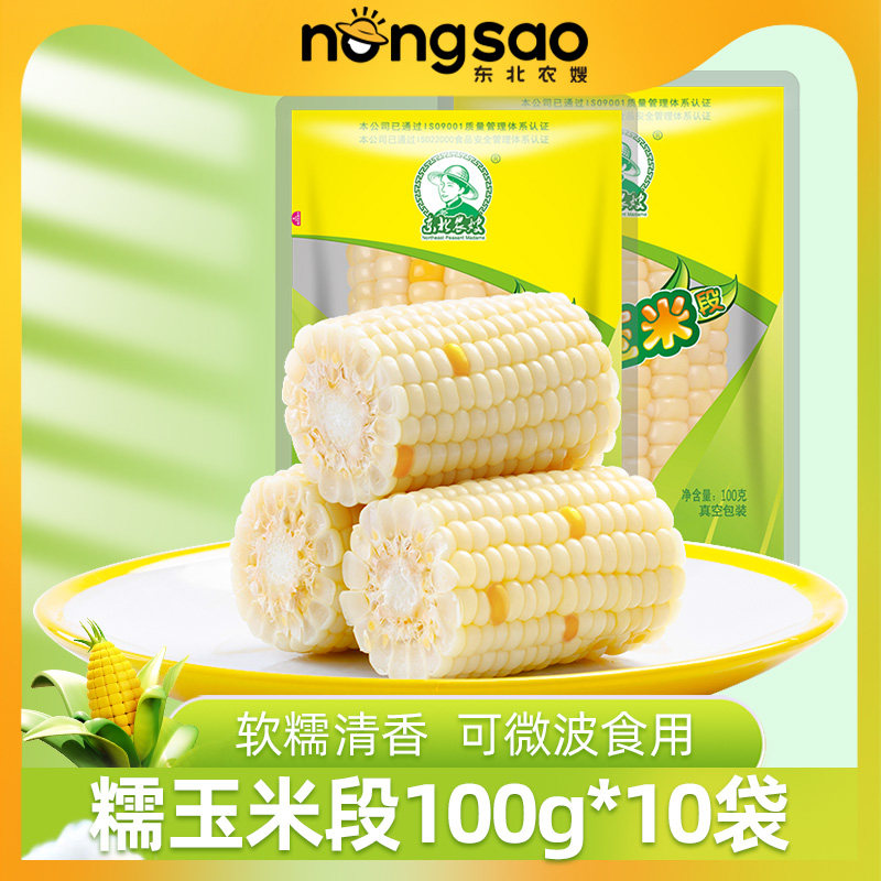 东北农嫂白糯玉米段100g袋白粘糯玉米真空米棒香糯苞米
