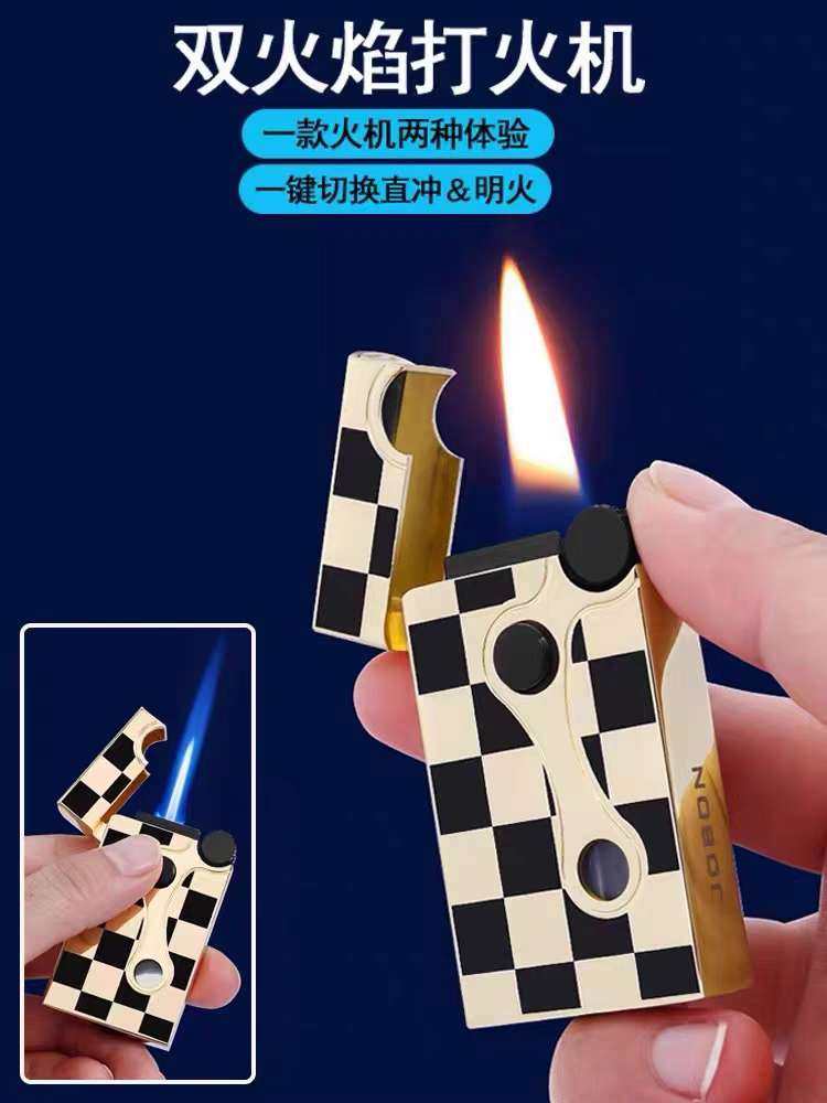 中邦新款创意双火切换直冲明火打火机防风充气经典砂轮点火个性潮