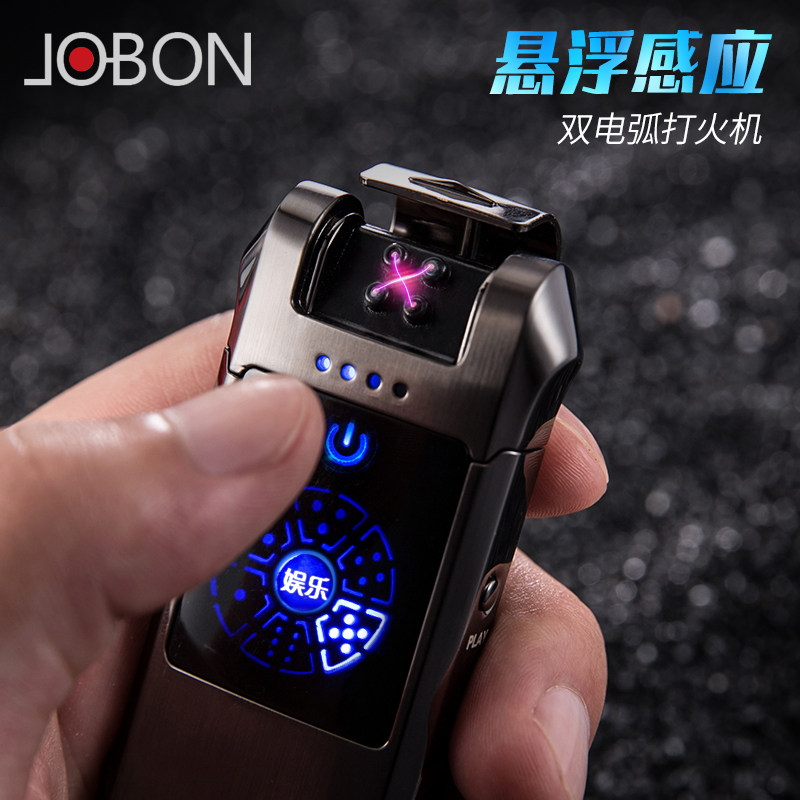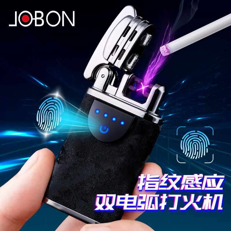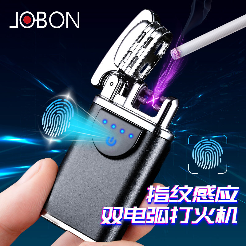 jobon中邦usb充电打火机创意个性指纹感应双电弧防风电子点烟器潮