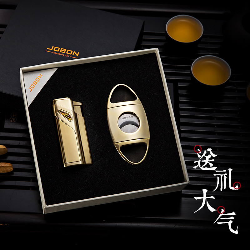 jobon中邦充气打火机直焰防风个性创意金属蓝焰雪茄点火器开口器