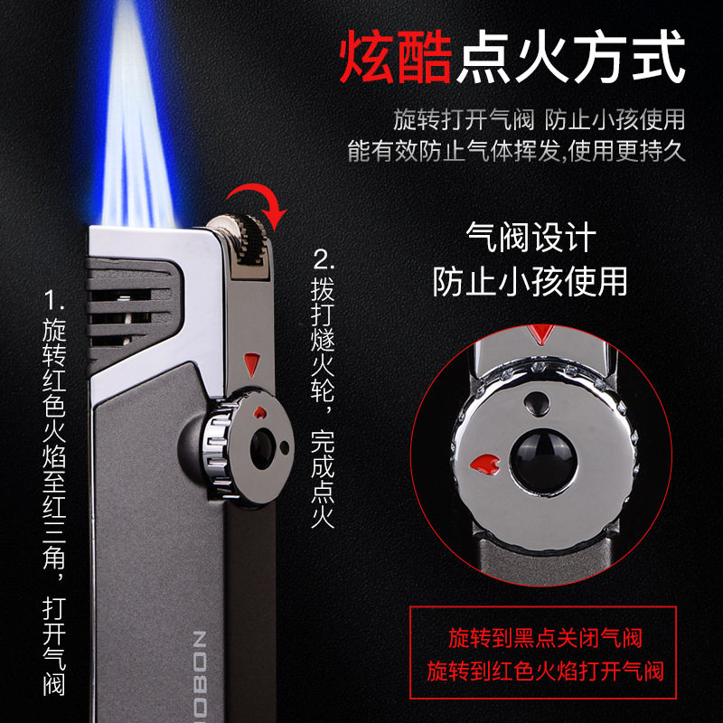 中邦抖音防风打火机充气砂轮创意个性三火直冲雪茄打火机气体男士