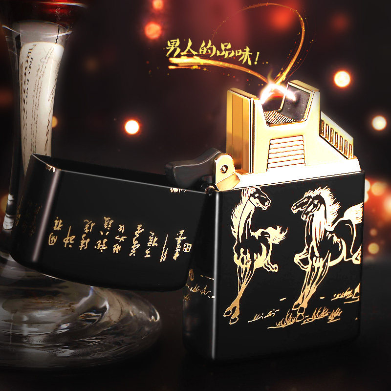 中邦双火切换直冲明火打火机防风定制金属男士电子砂轮点烟定制潮