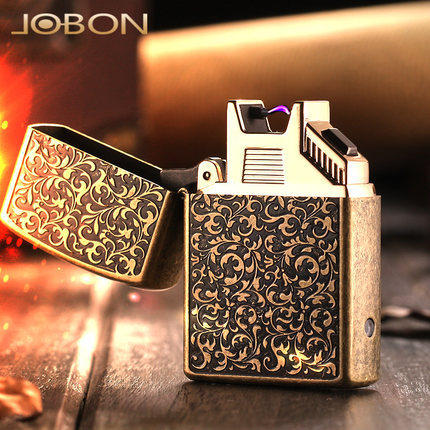 jobon中邦USB双电弧充电打火机防风创意个性男复古电子点烟器