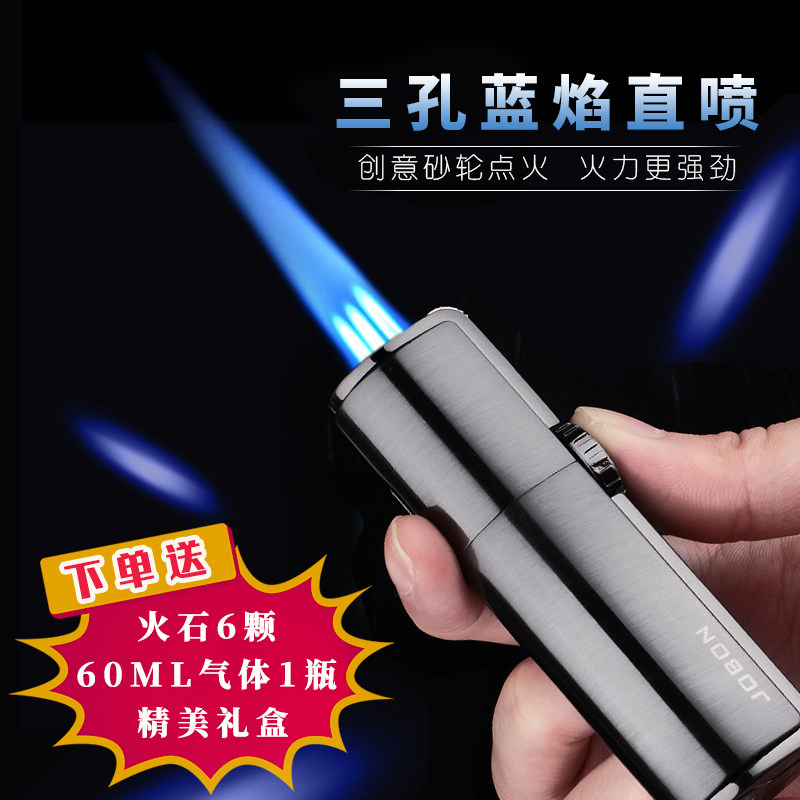三火直冲打火机jobon中邦防风可充气合金蓝火焰火力强劲雪茄火机