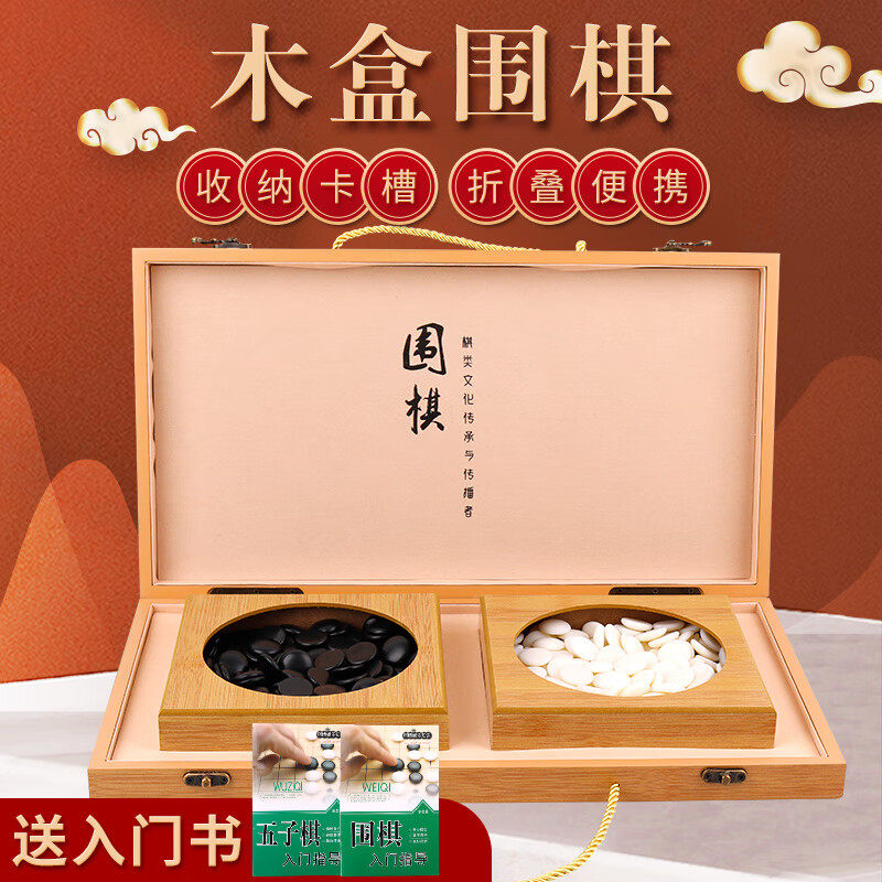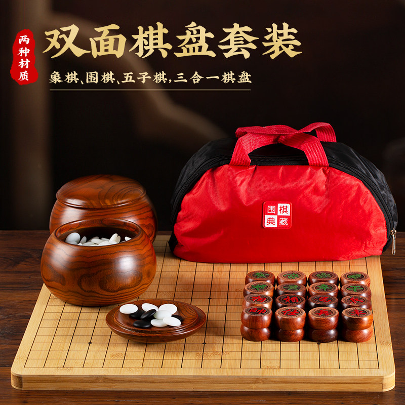 双面云子围棋五子棋楠竹棋盘木质中国象棋实木棋儿童学生初学套装