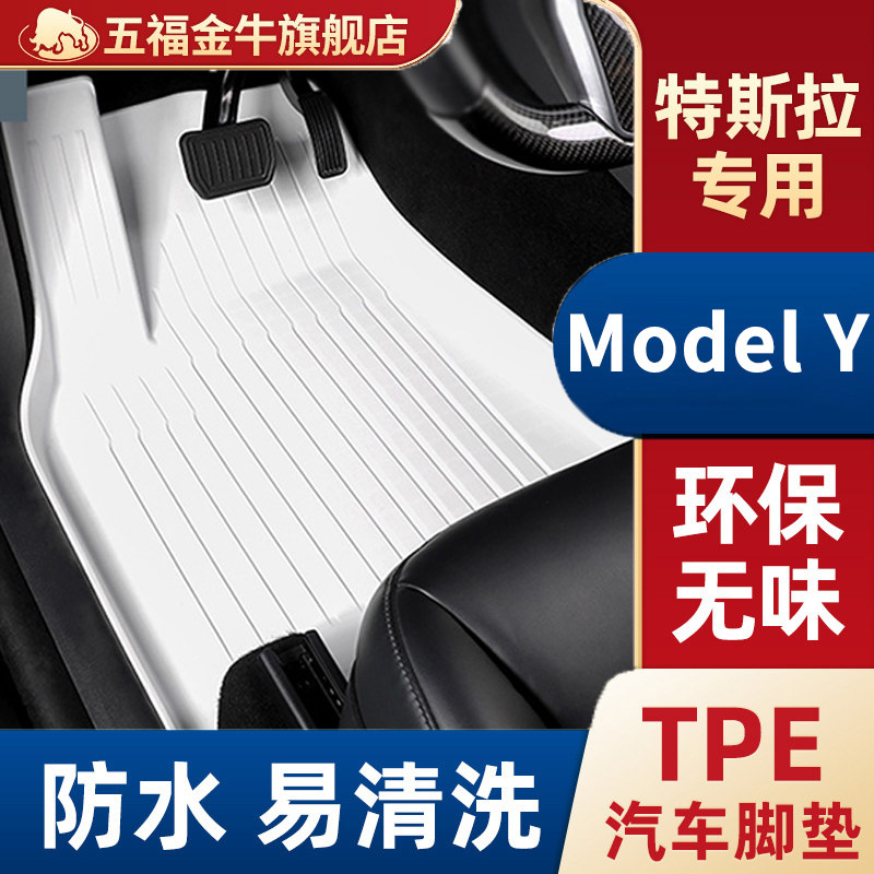 五福金牛注塑TPE汽车脚垫适用于特斯拉Model Y白色汽车改装配件丫