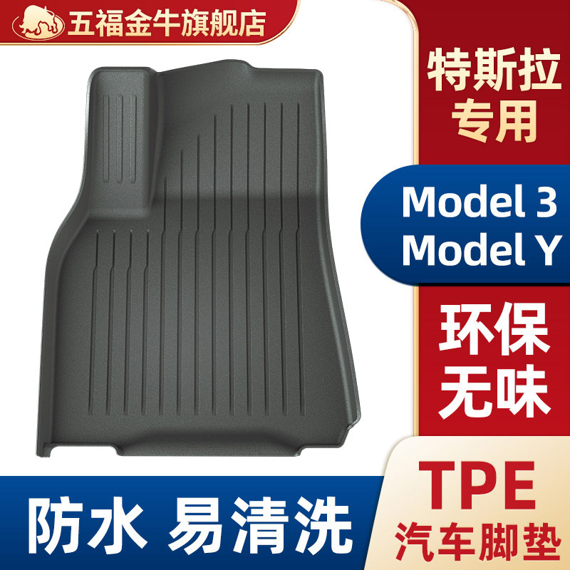 五福金牛TPE汽车脚垫适配特斯拉Model3 ModelY专用注塑脚垫尾垫