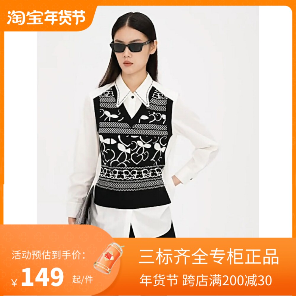 Eifini/伊芙丽2023冬季款假两件圆领羊毛衫套头针织衫1EA632214