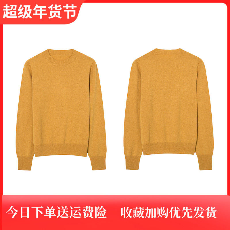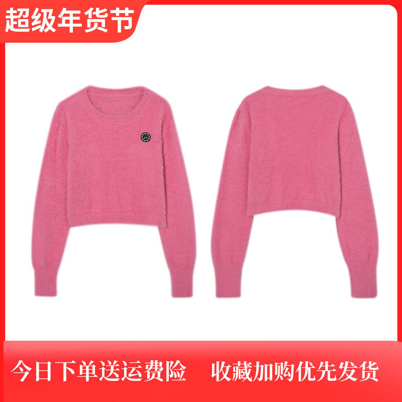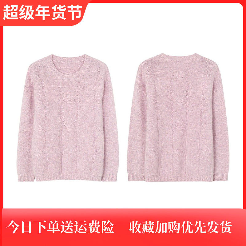 【轻奢羊绒】伊芙丽圆领粉色100%拉绒羊绒衫女2023秋气质针织上衣