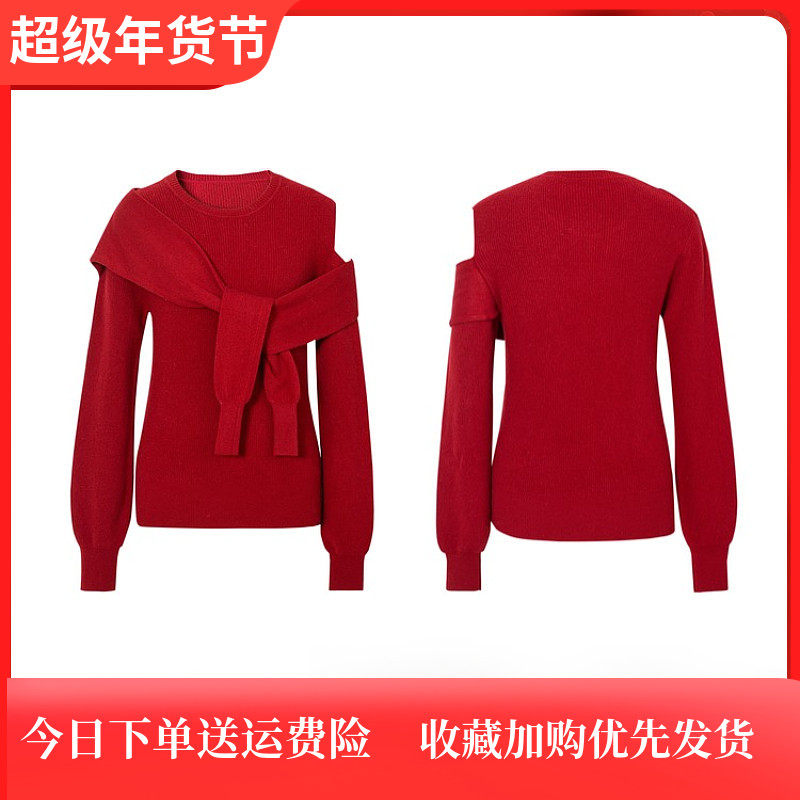 【商场同款】伊芙丽春新款红色设计感针织衫女2023冬1EC232421