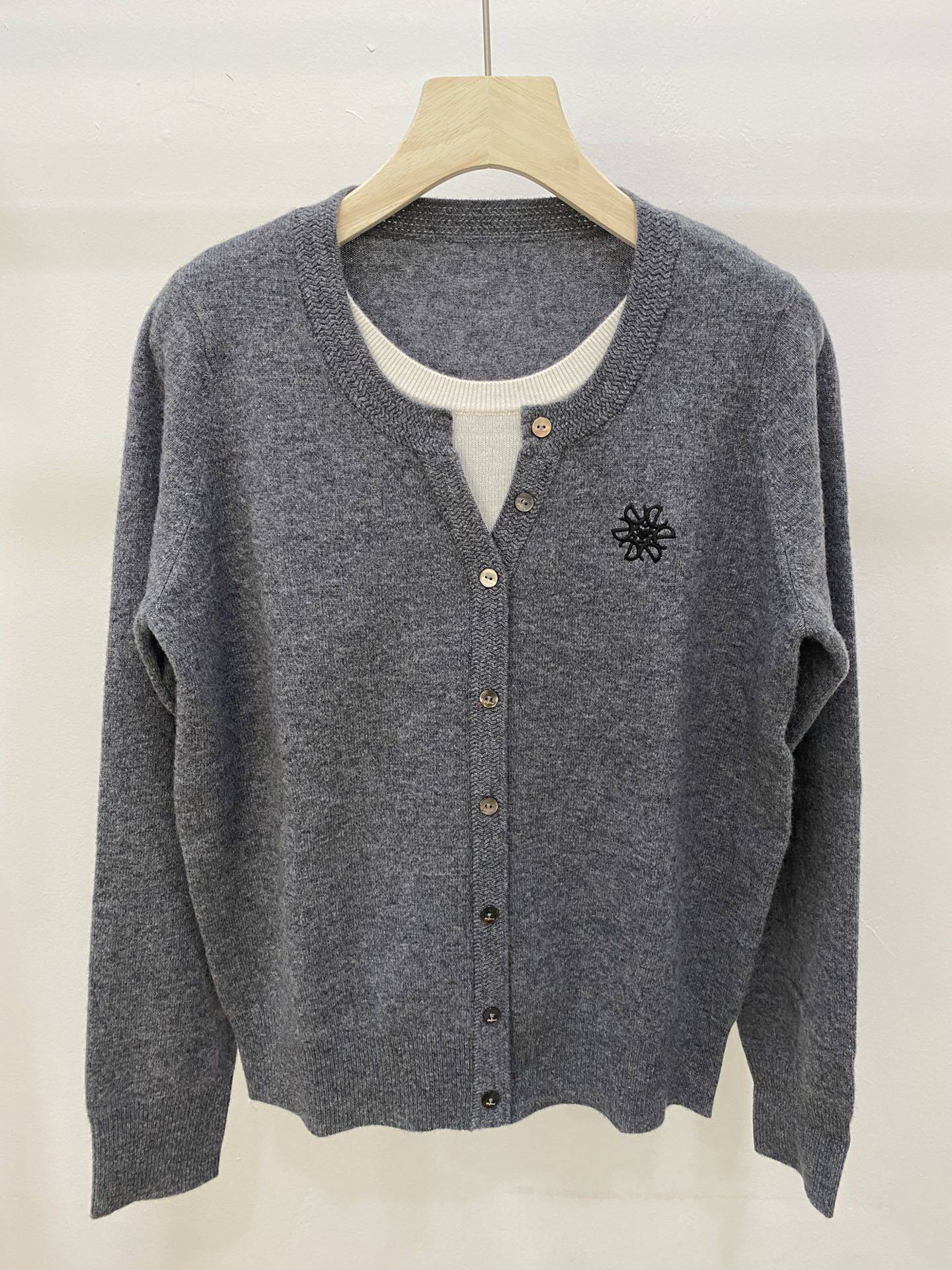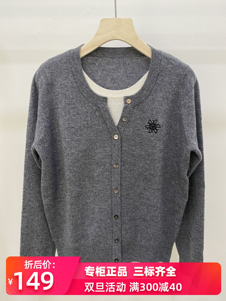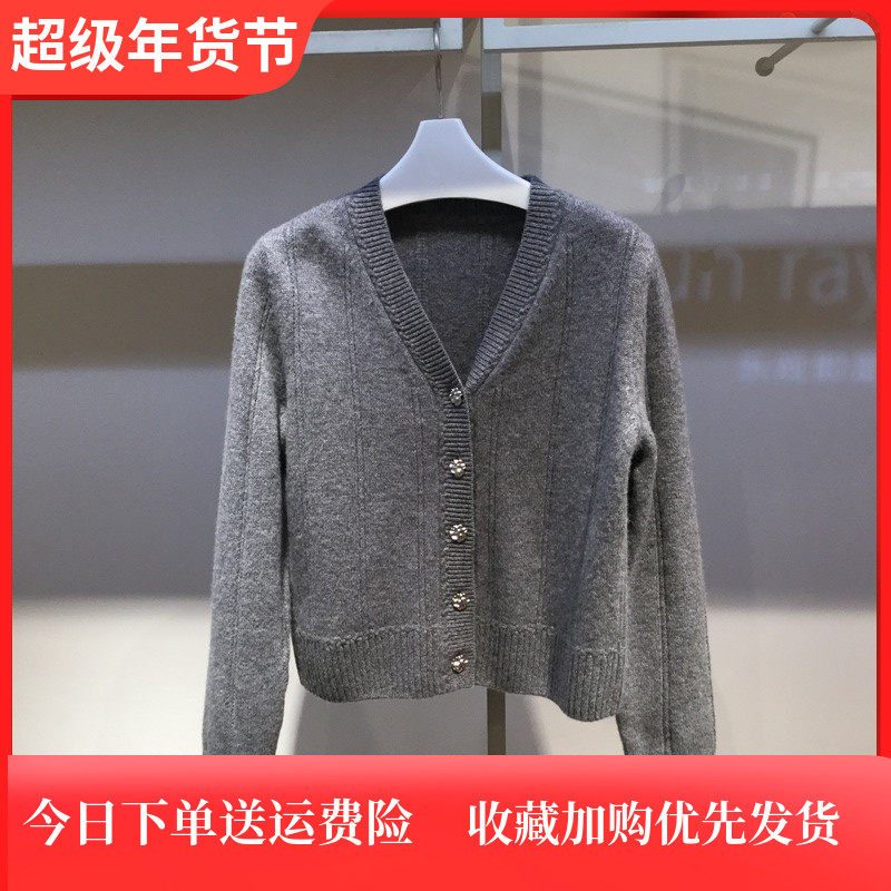 伊芙丽2023冬季新款通勤百搭高级灰羊毛针织开衫1EA232011