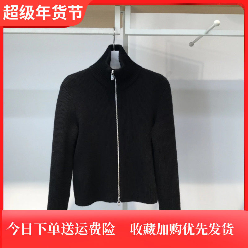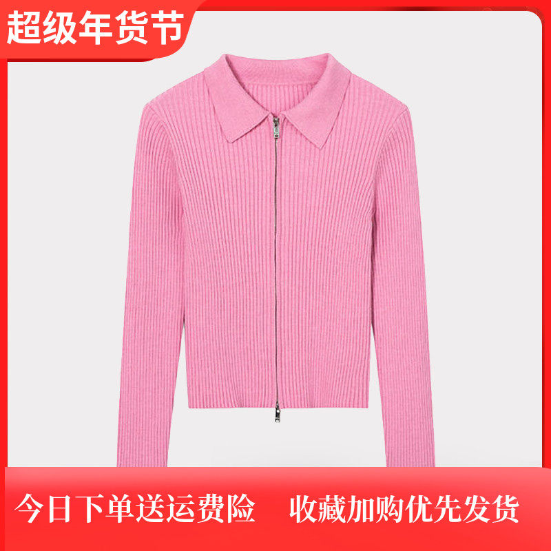 伊芙丽2023秋冬新款修身纯色百搭双拉链针织开衫外套女1EA133331